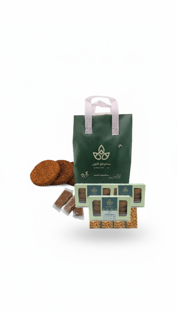 حقيبة اقتصادية تضم ألذ أنواع السمسمية والمعمول والكوكيز . خيار عملي ومناسب للتوزيعات أو الضيافة.